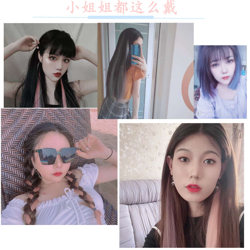 color hair piece hanging ear dyed hair extension color stripes matte high-temperature fiber can be ironed with a clip of long straight hair extension source factory delivery