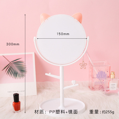 HD Rotatable Makeup Mirror Portable Desktop Cute Cat Ears Princess Mirror Student Dormitory Dressing Mirror Wholesale