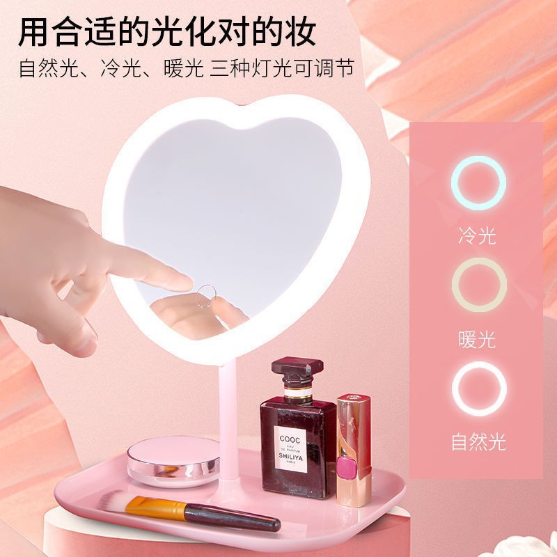 cross-border desktop internet hot mirror beauty dressing mirror usb rechargeable mirror love heart-shaped makeup mirror led with light fill light mirror