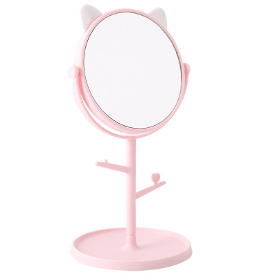 HD Rotatable Makeup Mirror Portable Desktop Cute Cat Ears Princess Mirror Student Dormitory Dressing Mirror Wholesale